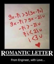 Ini adalah surat cinta dari seorang pelajar yang terlalu obses dengan subjek Mathematics. . My sweet straight line , Yesterday, I was passing by your rectangular house in trigonometric lane There, my eyes with positive slope felt orthogonally on your cute circular face ,, conical nose and spherical eyes Before seeing you,, my heart was a null set, but when a vector from your eyes at deviation at theta radians made a tangent to my heart,, I got differentiated. . My love for you is a quadratic equation with real roots Now, you can only integrate me back to my life. . With my love tending to infinity. . Labels: lurve, wasting time ![]() 2 comment[s] | back to topREWIND ME THE PAST | |